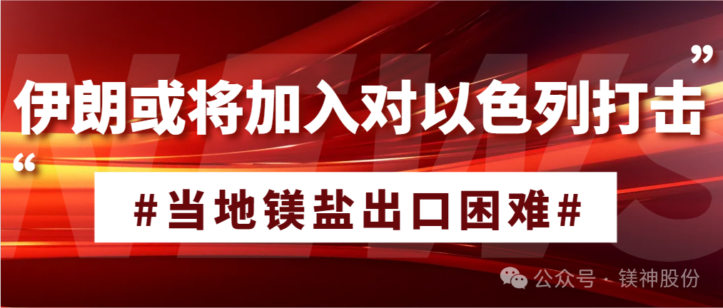 伊朗或將加入對以色列打擊,當地鎂鹽出口困難