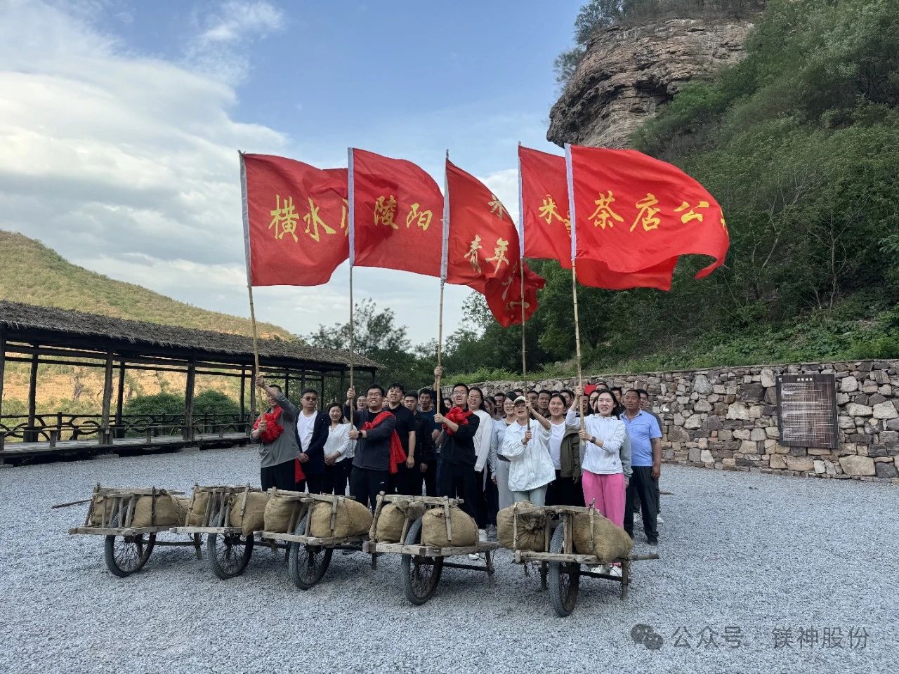 走出紅旗渠紀(jì)念館,大家開啟了徒步7.8公里前往紅旗渠青年洞的征程,沿著蜿蜒的渠道前行,腳下是堅(jiān)實(shí)的石板路,身旁是潺潺的渠水,頭頂是湛藍(lán)的天空,遠(yuǎn)處是巍峨的山巒。在徒步過程中,大家相互鼓勵(lì)、相互扶持,共同克服疲憊與困難。抵達(dá)青年洞時(shí),全體人員在黨旗下莊嚴(yán)宣誓,鏗鏘有力的誓言回蕩在山谷間,彰顯著鎂神人對(duì)黨的忠誠(chéng)與為事業(yè)奮斗的決心。隨后,大家還親身體驗(yàn)了鑿山石、推獨(dú)輪車、打夯等當(dāng)年修渠時(shí)的勞動(dòng)項(xiàng)目。每一次揮錘、每一次推車、每一次夯打,都讓大家深刻感受到先輩們的艱辛與不易,也讓紅旗渠精神更加鮮活地銘刻在大家的心中。