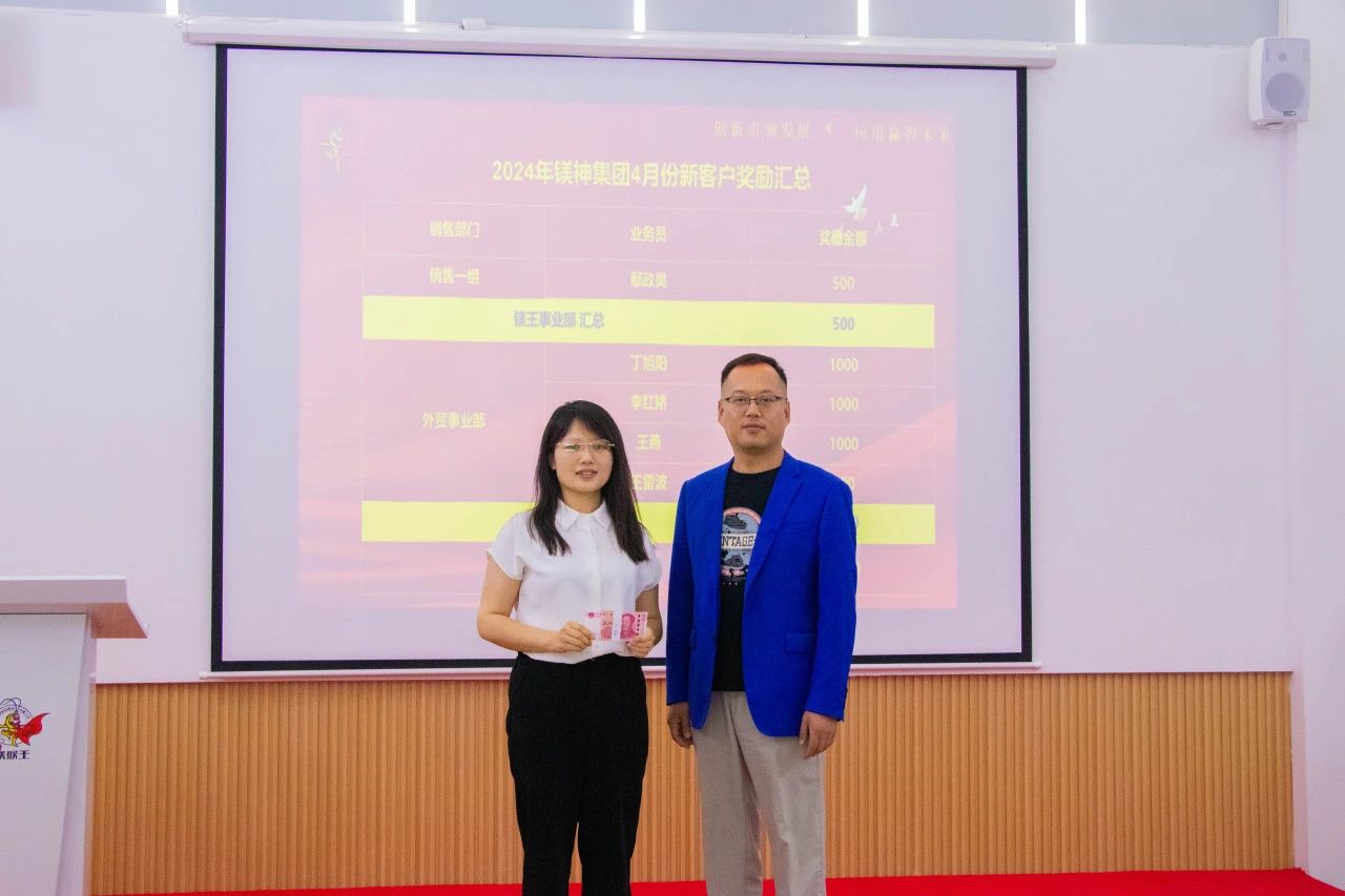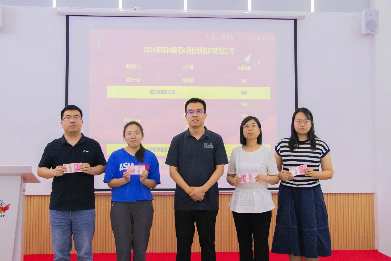 近日,河北鎂神科技股份有限公司迎來了新的業(yè)務(wù)突破,公司頒發(fā)4月份新客戶獎勵,以表彰和獎勵那些為公司帶來新增長點(diǎn)的銷售團(tuán)隊和個人。