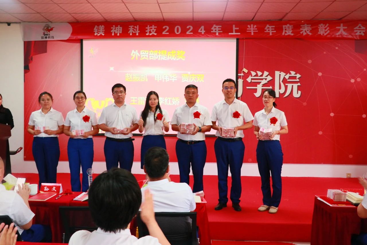 2024年9月18日,在這碩果累累的季節,河北鎂神科技股份有限公司舉辦了一場隆重的半年度表彰大會。本次大會不僅總結了公司上半年度的輝煌成就,還對表現突出的員工和團隊進行了慷慨的獎勵。此次表彰大會的獎金總額高達175.98萬元,其中包括:優秀表彰共44.9萬元,鎂神英雄獎1萬元,優秀團隊及特殊貢獻獎共計83萬元,2023年外貿提成及市場獎勵47.08萬元。這些豐厚的獎勵不僅是對優秀員工的肯定,更是對未來拼搏的激勵。