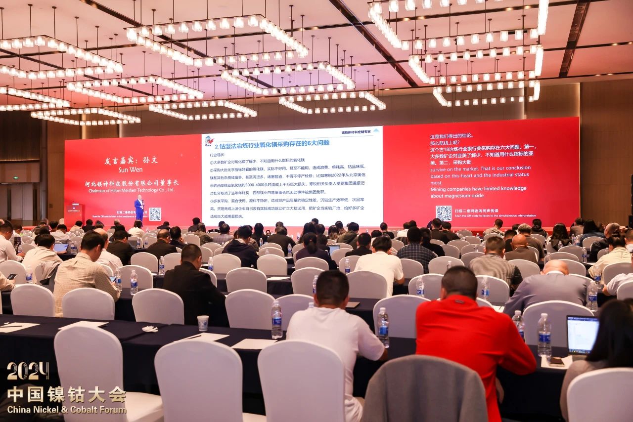 在這場聚焦“以新質生產力激發鎳鈷行業高質量發展新動能”的盛會上,河北鎂神科技股份有限公司董事長孫文先生作為嘉賓受邀出席并發表了題為《鈷置換劑用氧化鎂在非洲剛果金市場的發展現狀及存在問題》的主題報告,為與會者帶來了深刻洞察與前瞻思考,贏得了現場陣陣掌聲。