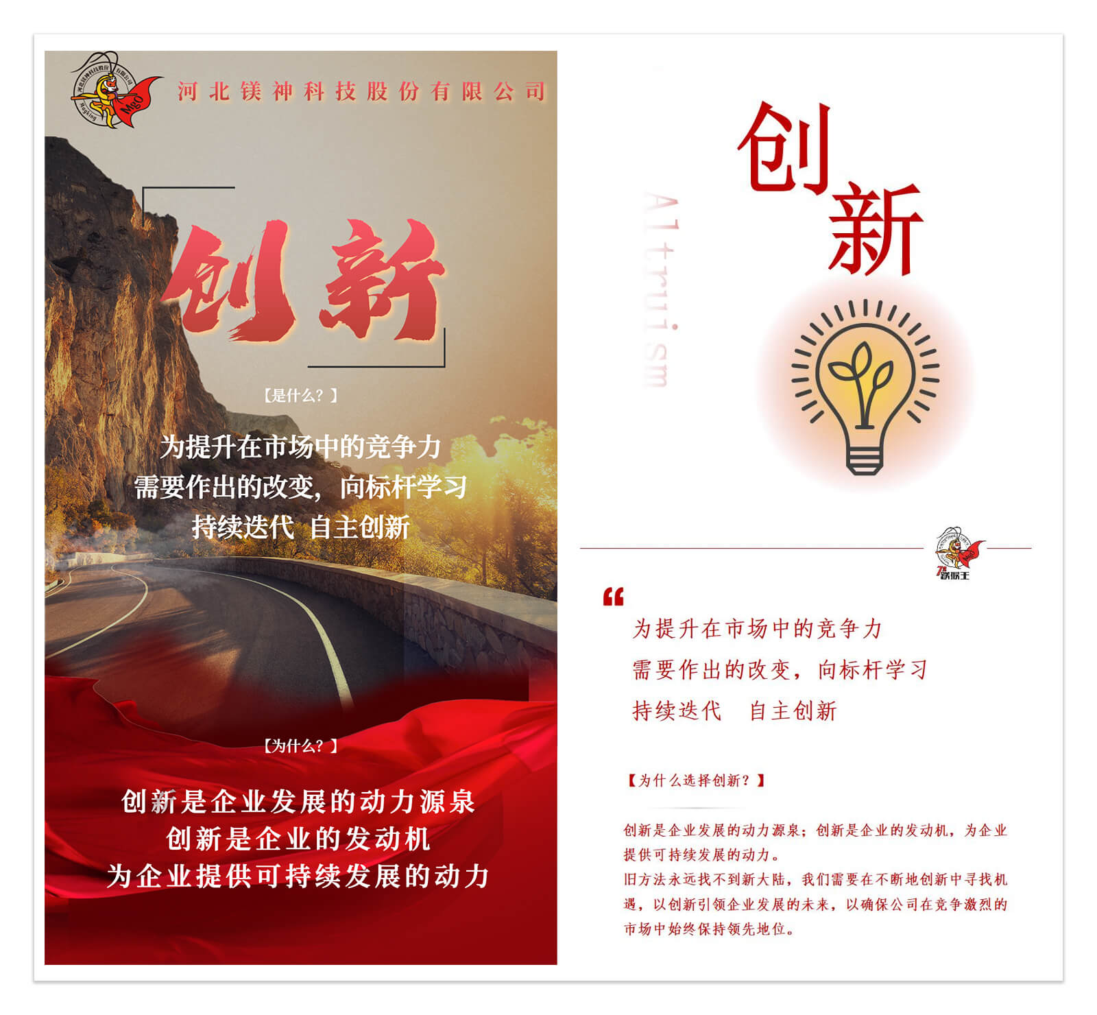 鎂神科技以創辦實業,發展經濟,造福一方,共同富裕為初心;秉承著為全球用戶提供更適合的氧化鎂,為人類健康、科技創新、可持續發展作出貢獻的使命;有著創建百年鎂神平臺,讓客戶、員工、股東共同發展、共同快樂、共同富裕的美好愿景;培育出拼搏、堅韌、越挫越勇的鎂神人。鎂神人用誠信、激情、夢想、狂學、內省、溝通、合作、創新、利他的價值觀向客戶、社會各界朋友詮釋著鎂神的企業文化!
