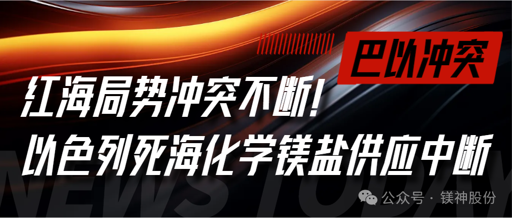 最新消息,也門胡塞武裝發言人葉海亞·薩雷亞當地時間27日稱,胡塞武裝對美國海軍部署在紅海的2艘驅逐艦發動了無人機襲擊,并準確擊中目標,紅海緊張局勢再度升級。且胡塞武裝發言人葉海亞·薩雷亞之前也宣布向所有向以色列輸送貨物的船只發起襲擊。受此影響,死海化學溴業有限公司(DEAD SEA BROMINE COMPANY LTD)鎂鹽生產中斷、產品運輸成本暴漲,給全球鎂鹽供應鏈帶來不良影響。